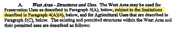 The conservation easement clearly states on Page 7: "The West Area may (only) be used for Preservation Uses . . . and for Agricultural Uses. . . and managed primarily as a natural area with limited public access.”